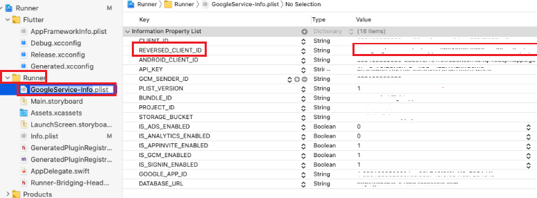 Runner - GoogleService-Info.plist - REVERSED_CLIENT_ID 값 복사
