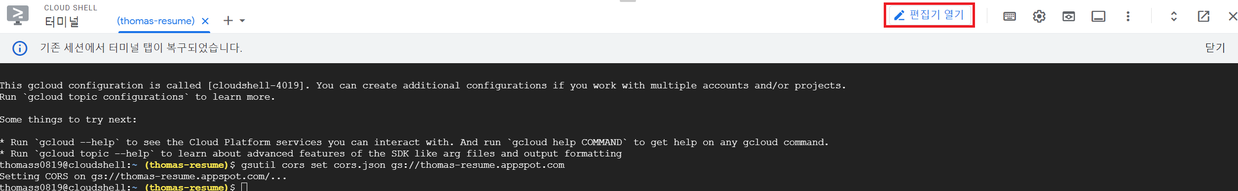 아래에 터미널이 나오는데 편집기 열기 클릭