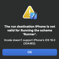 The run destination iPhone is not valid for Running the scheme 'Runner'.
