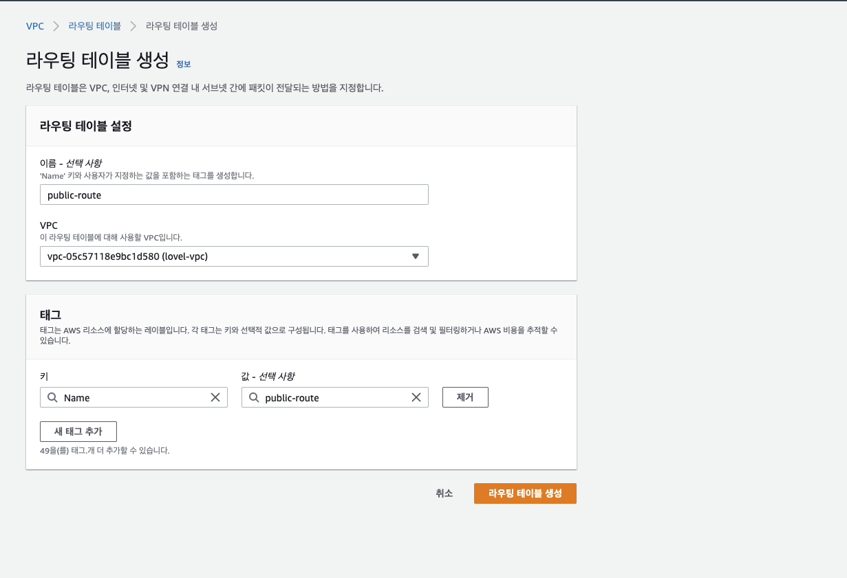0.0.0.0/0 과 ::/0 각각 적어주고 대상엔 인터넷 게이트웨이 클릭하면 자동으로 만든게 뜸 설정 후 저장