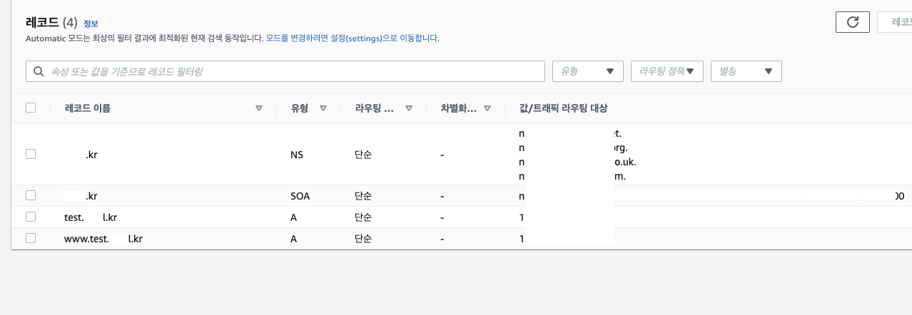 aws의 NS 타입 의 값/트래픽 라우팅 대상 값들을 뒤에 . 빼고 다 넣고 적용