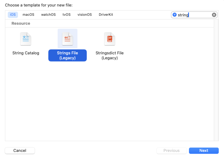 제목을 InfoPlist.strings로 만들고 create 클릭