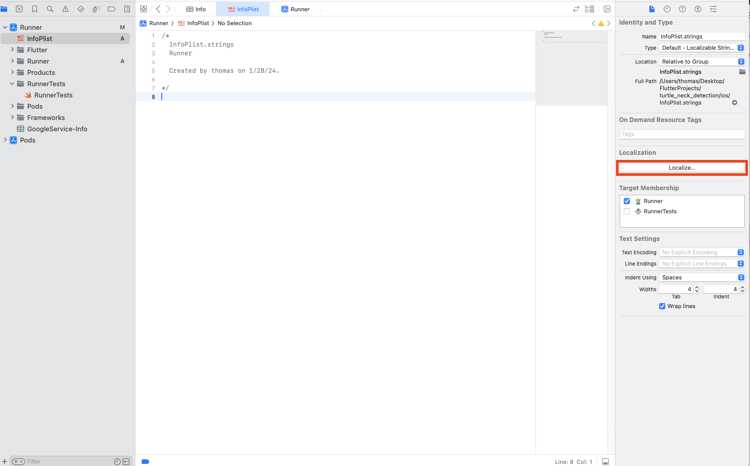 생성후 맨오른쪽에 localization에 모두 클릭하면 왼쪽에 infoPilst안에 각각언어로 생성된다