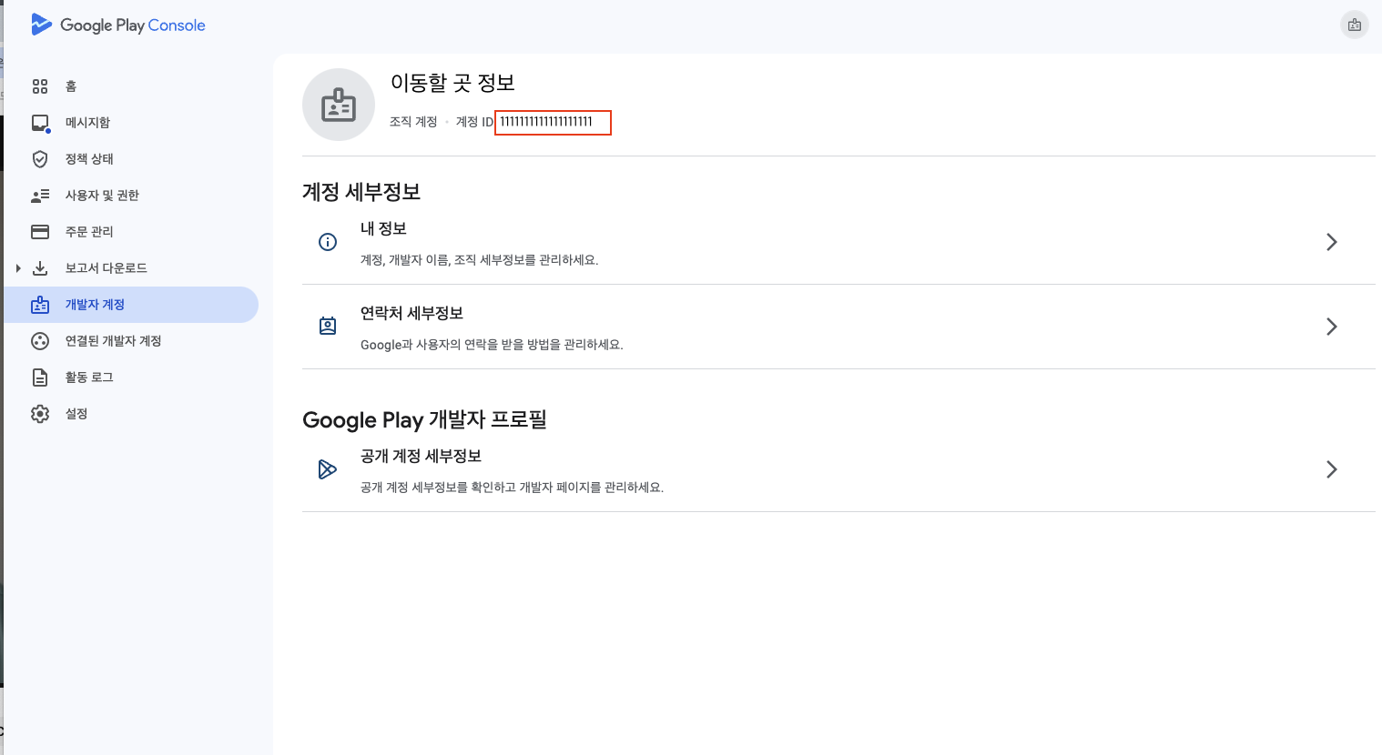 새 개발자 계정 확인방법