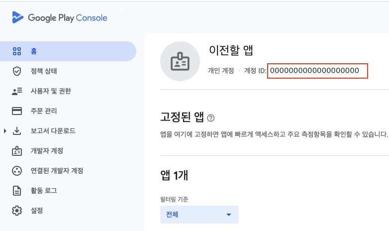 홈- 계정id or 개발자계정 - 계정id 두곳에서 id 확인 가능