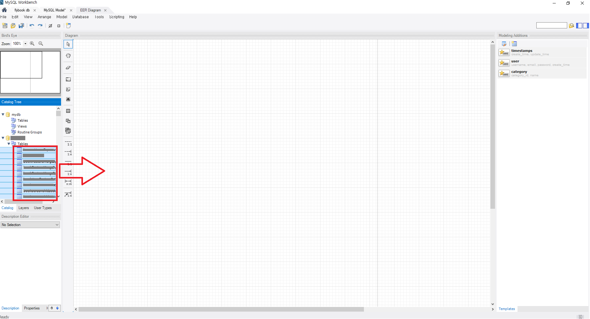 db명 안의 Tables안의 테이블 전체클릭후 드래그앤 드롭 하면 끝!
