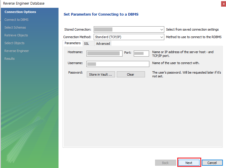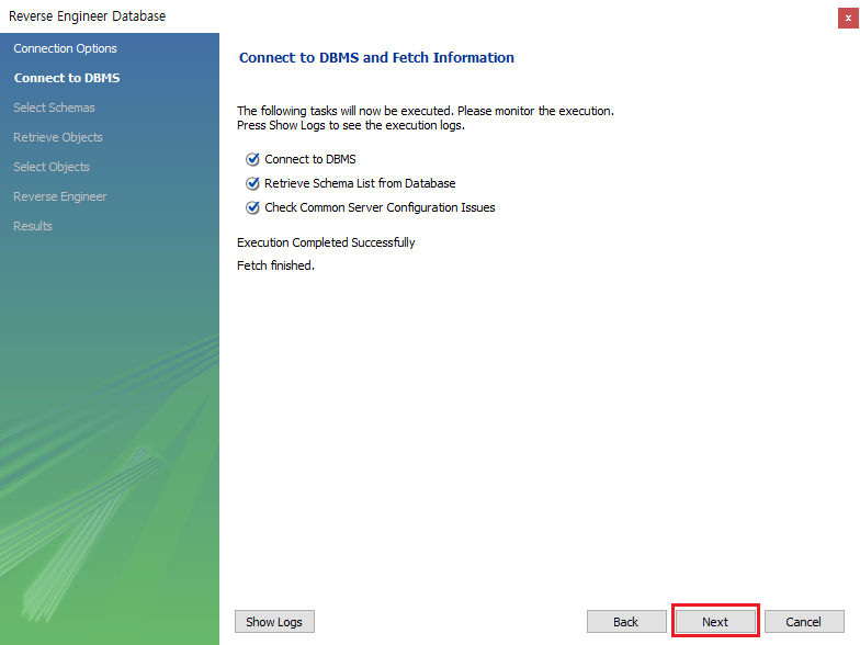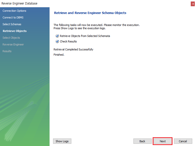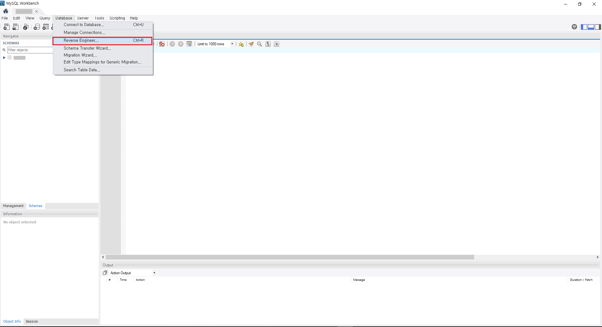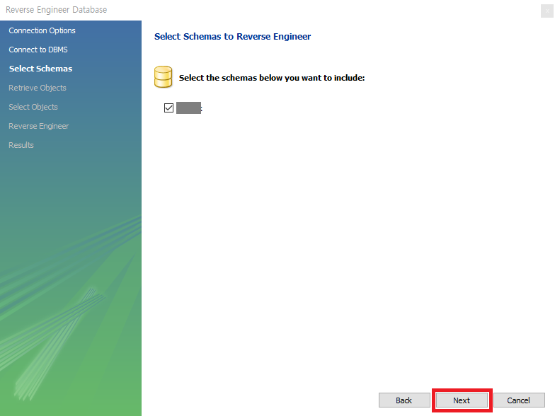 Database -> Revers Engineer 클릭