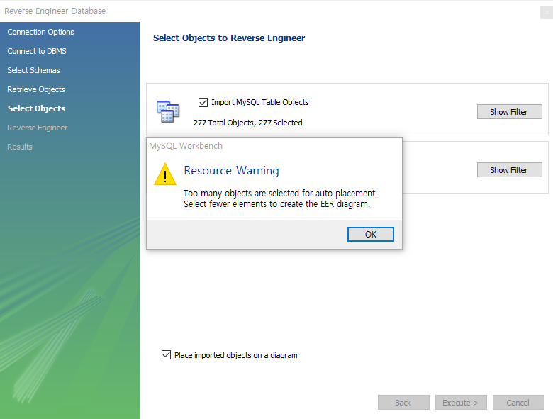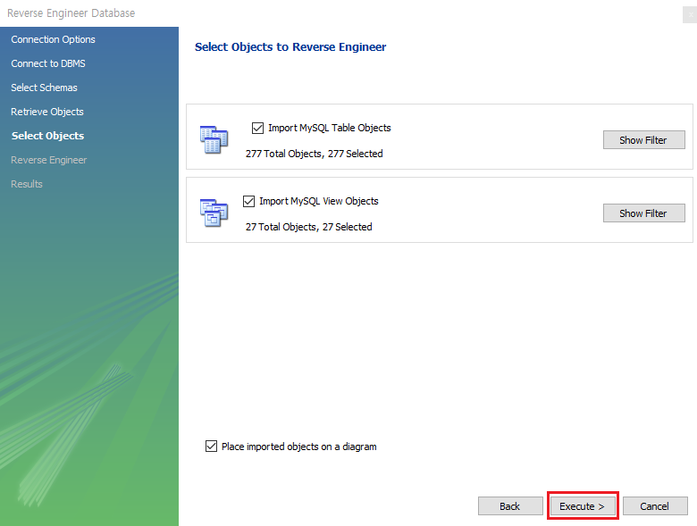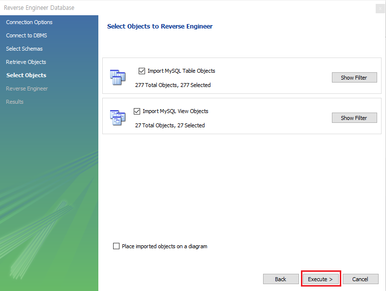 Place imported objects on a diagram 체크 해제 후 Execute 클릭!