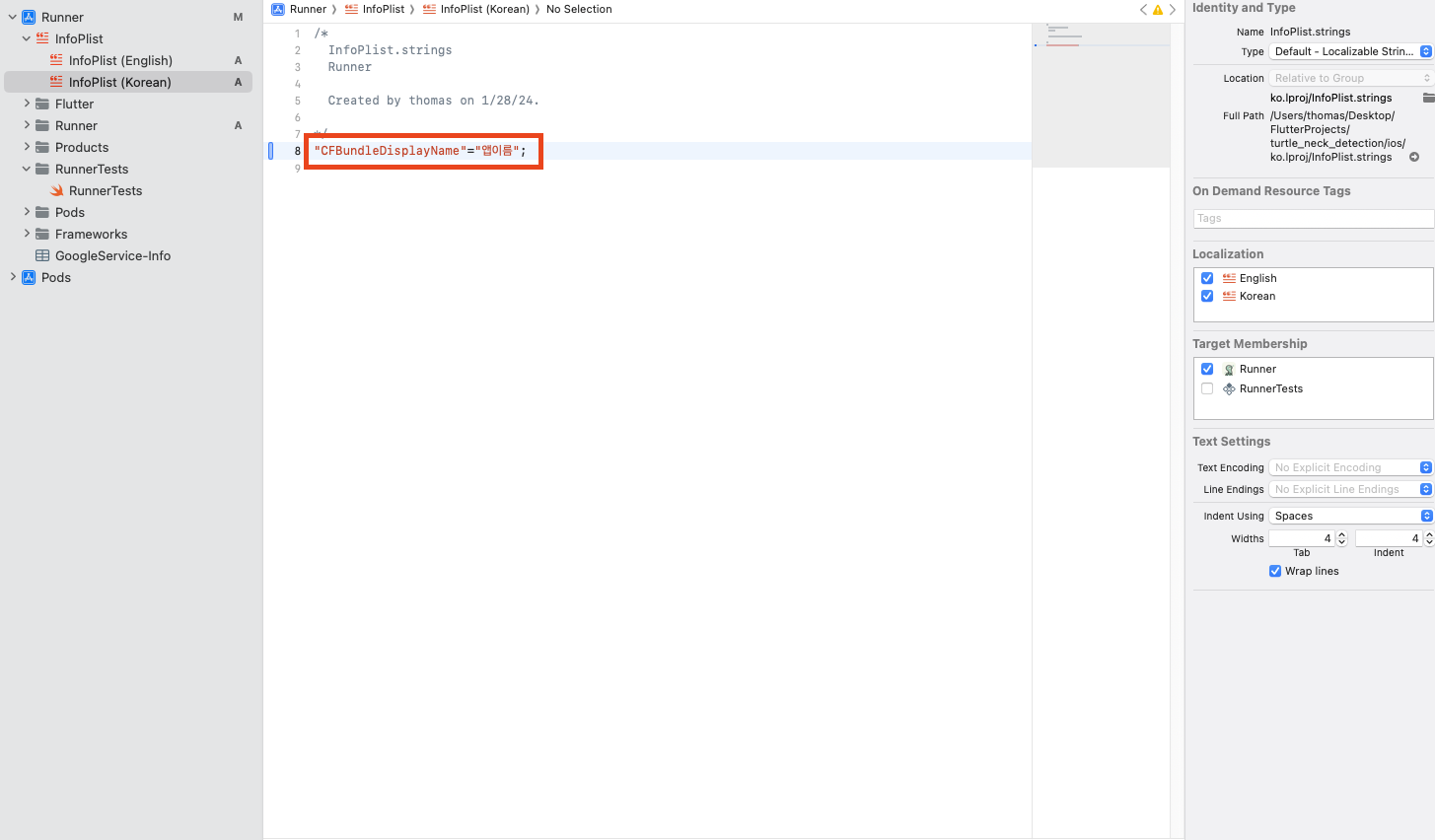 xcode-Runner-Runner-AppDelegate에 들어가서 값추가