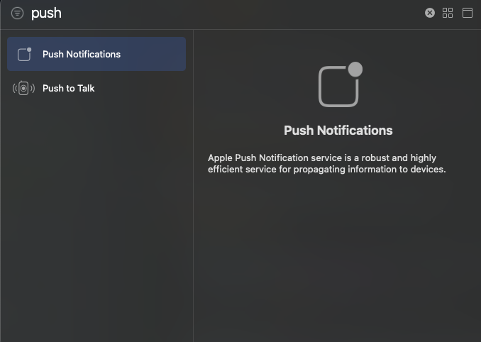 쭉내리다보면 Push Notifications 발견하면 클릭후 저장한다