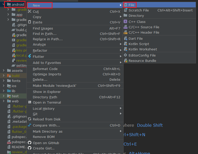해당 경로에 파일이 있다 (flutter 프로젝트 위치 내의 경로)