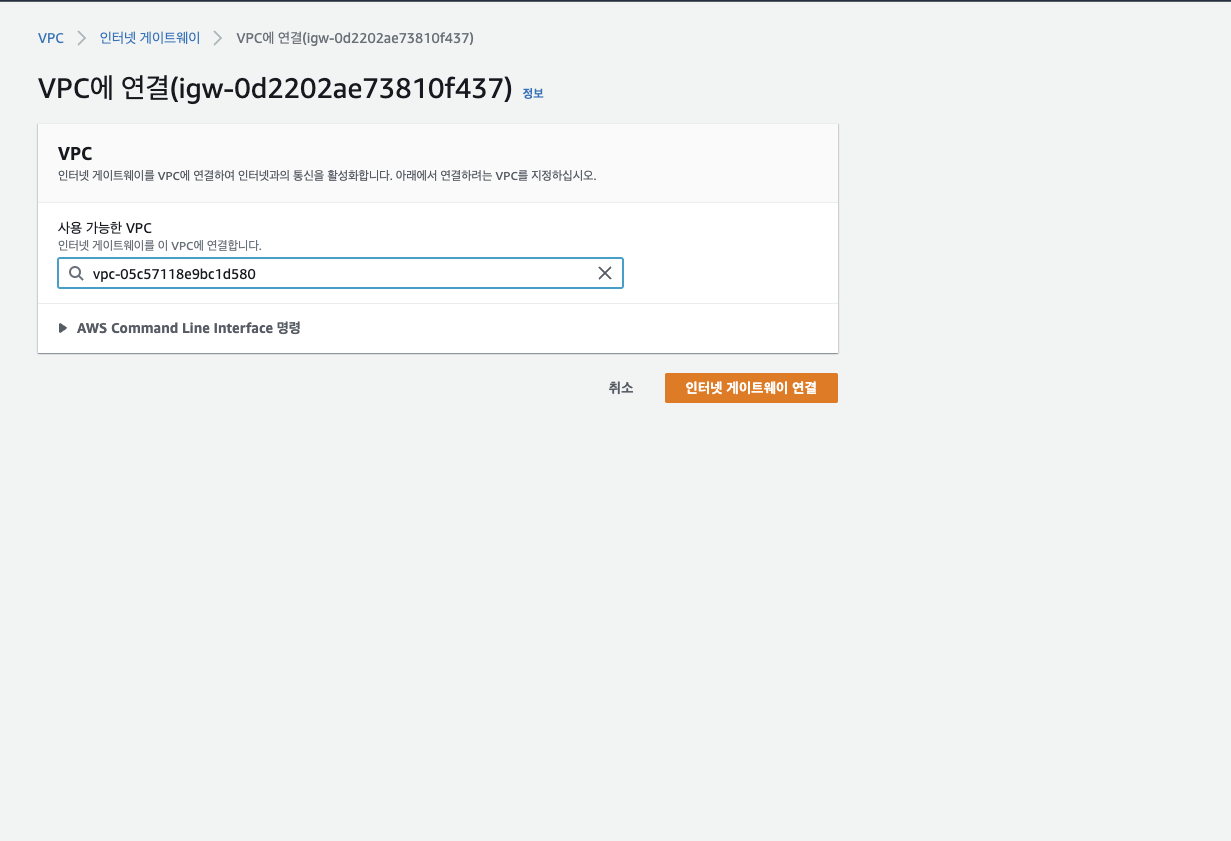 만들면 위에 녹색으로 vpc에 연결하기 클릭