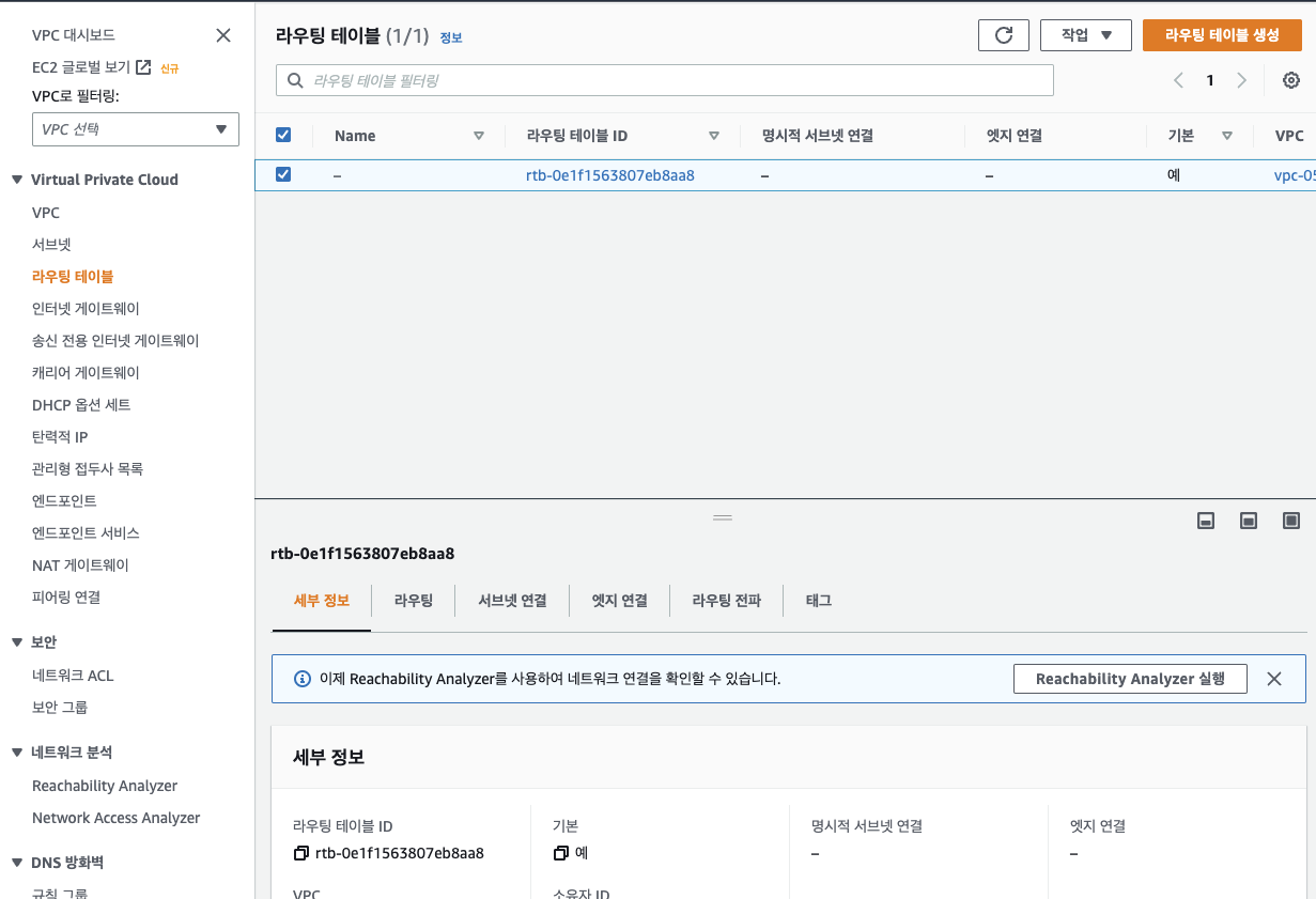 _는 기본으로 만들어진것임 무시하고 라우팅 테이블생성 클릭