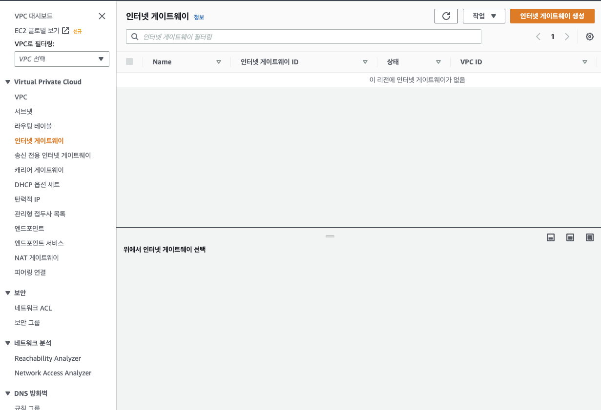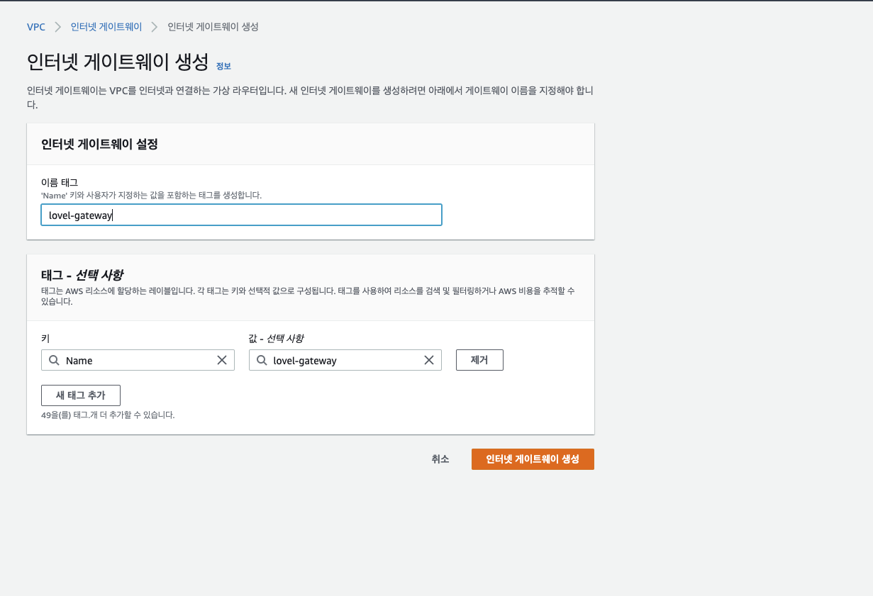 0.0.0.0/0 과 ::/0 각각 적어주고 대상엔 인터넷 게이트웨이 클릭하면 자동으로 만든게 뜸 설정 후 저장
