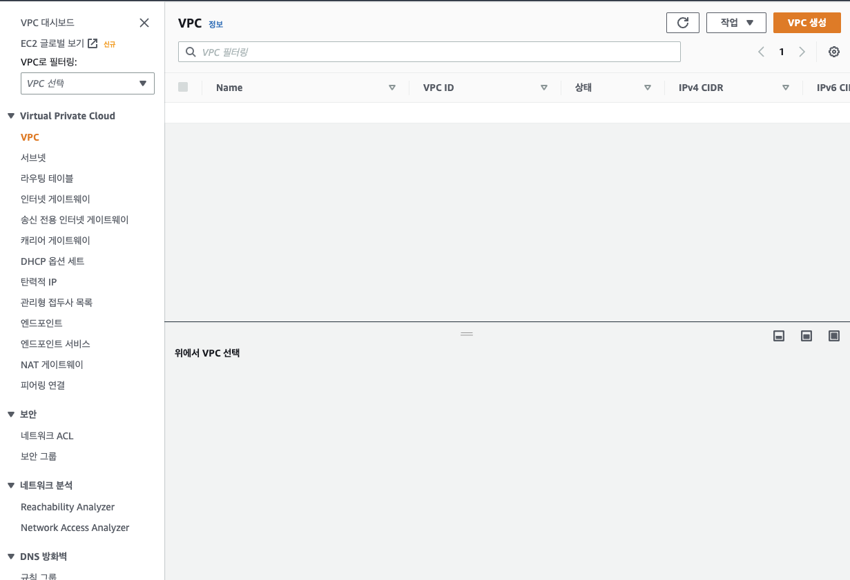 vpc 에 들어가 작업-기본vpc생성 클릭